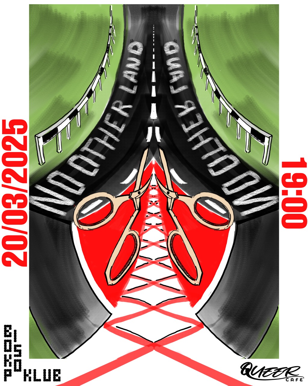 „No Other Land” este un film documentar realizat de un colectiv format din patru activistx din Palestina și Israel. Realizat ca un act de rezistență prin documentarea distrugerii și deposedării unei comunități Palestiniene din West Bank. Filmat pe o perioadă de 5 ani, cu încheierea producției în octombrie 2023, filmul explorează teme de identitate, deplasare forțată și reziliență.